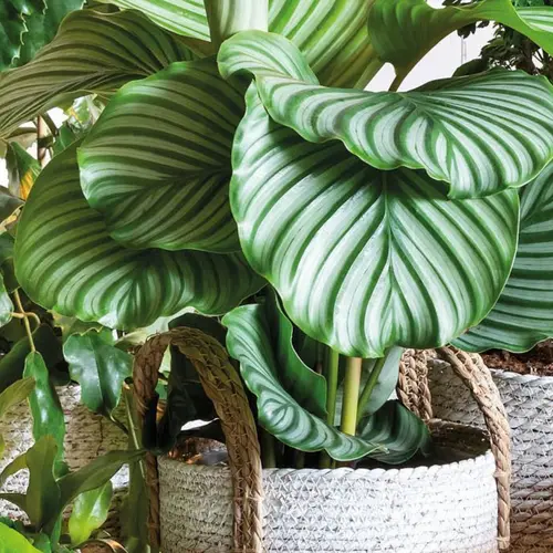 - Calathea: prachtige patronen en kleuren, ideaal voor een tropisch accent.