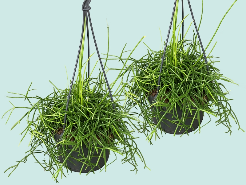 De Rhipsalis cassutha ‘Oasis’ is er vooral in frisgroene tinten, met een luchtige, haast zwevende groeiwijze. Ideaal voor in hangpotten, macramé-hangers of als ‘waterval’ van groen vanaf een hoge kast. Combineer haar met andere epifyten zoals Tillandsia of met planten met grote bladeren voor een spannend contrast.